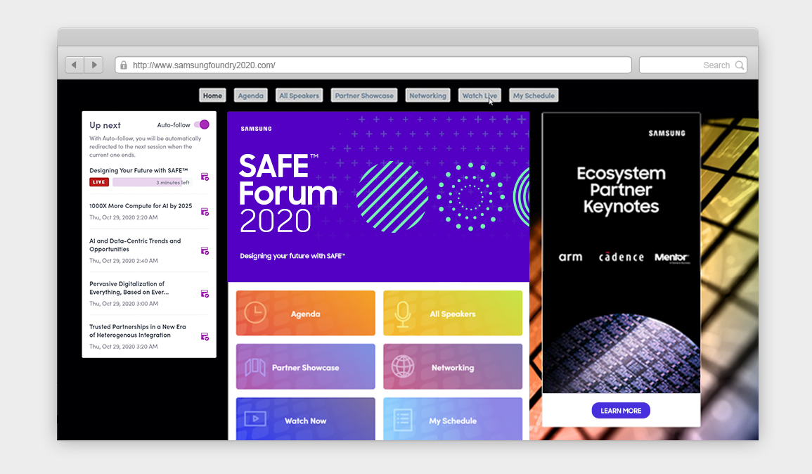 The SAFE forum brings together Samsung Foundry and industry experts. Together, they share the latest innovations in process and packaging technology, IP, design solutions and services to efficiently develop and manufacture semiconductor products. The SAFE forum 2020 was held virtually due to the deadly COVID-19 virus outbreak. Samsung Foundry's first-ever, global, virtual event has been showcased in five unique regions – The US, Korea, Japan, China, and Europe.